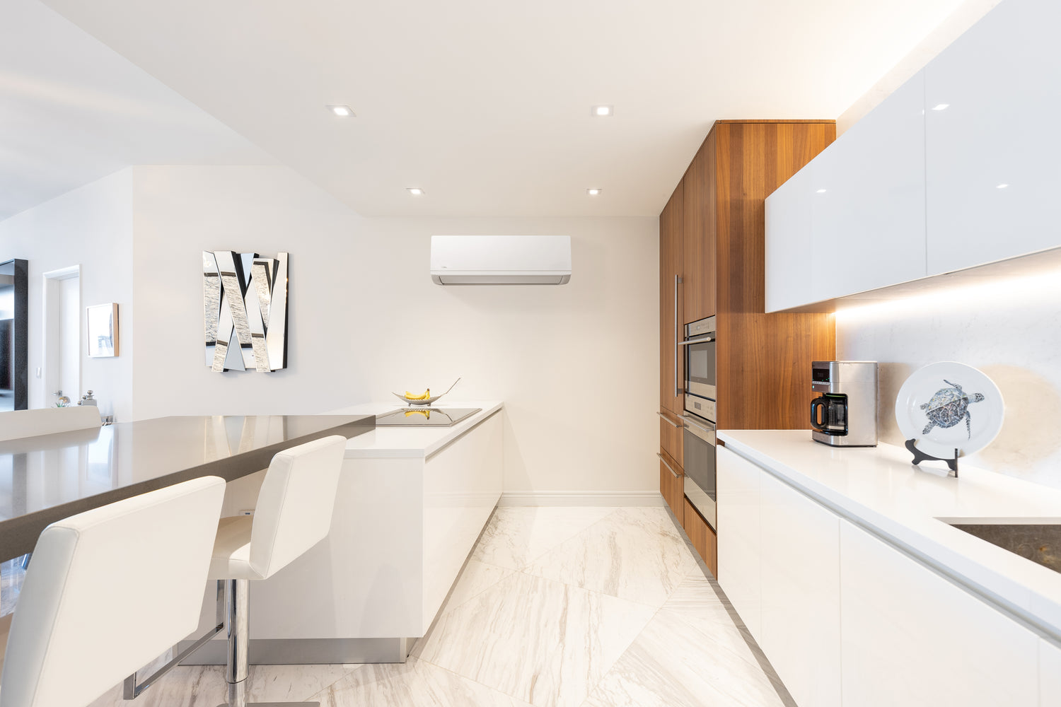 Ducted air conditioning is a solution that uses an outdoor unit, connected by pipes and wiring to a centralised fan coil unit in the roof space; which is connected to a series of ducts to distribute conditioned air to a number of separate spaces.